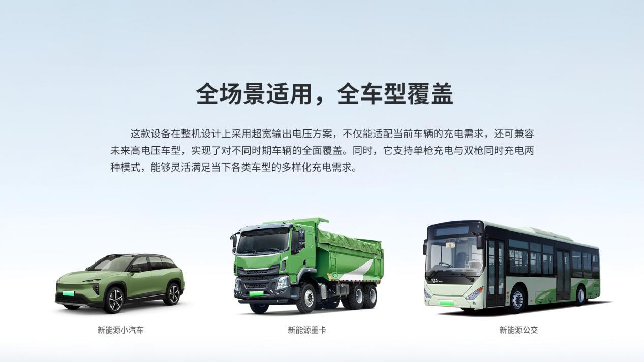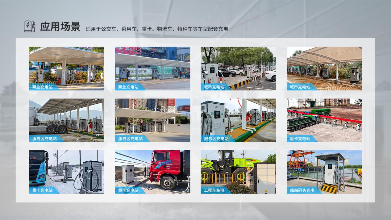 適用于新能源私家車、網(wǎng)約車、出租車、重卡、大中型工程機械專業(yè)車輛等需求大功率快速充電場景,可廣泛應(yīng)用于公共充電站、商場、寫字樓、園區(qū)、住宅小區(qū)、工地、礦區(qū)等